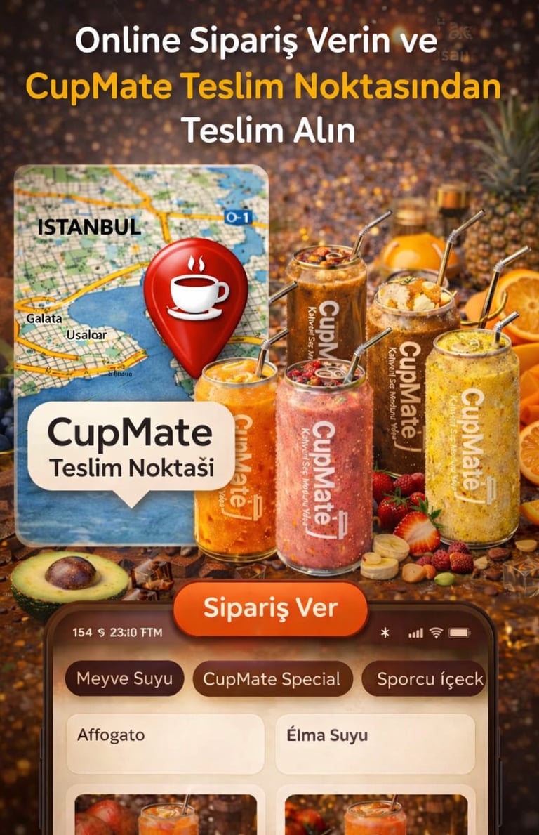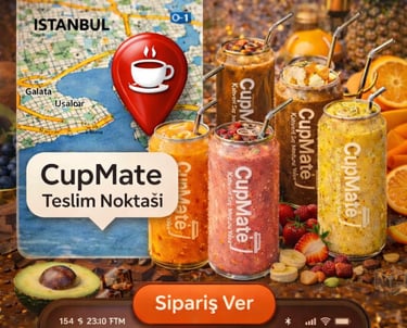 CupMate, sizin için İstanbul genelindeki birçok alım noktasında taze ve paketli içecekler sunar.