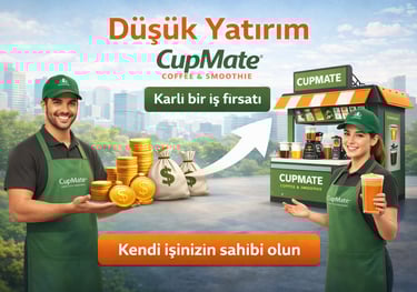 Franchise sahipleri için CupMate, düşük yatırım maliyeti, ölçeklenebilir iş modeli, uygun hammadde maliyetleri ve İstanbul ile Türkiye genelinde müşterilere hizmet verme potansiyeli sunar.